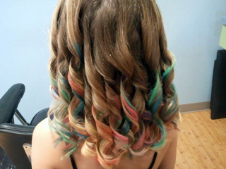 - Clip in colored reusable hair extension added to their braid